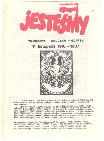 • Ulotka „Jesteśmy. Warszawa – Wrocław – Gdańsk. 11 listopada 1918 – 1987” z 1987 r., IPN Ra 131/412, s. 1-4. (pdf, 798.84 KB)
