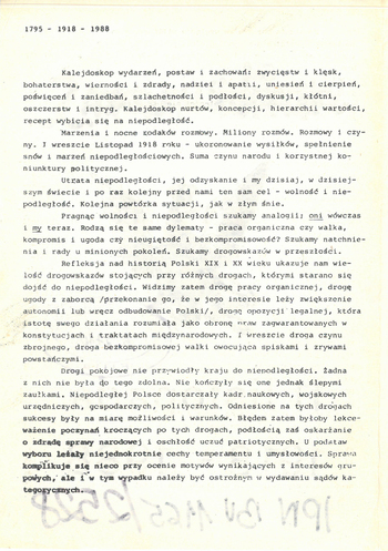 • Publikacja „11 listopada 1918-1988” wydana przez Solidarność Walczącą w zwiazku z 70. rocznicą odzyskania przez Polskę niepodległości, IPN BU 1165/2528. (pdf, 8.27 MB)