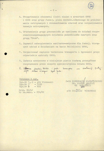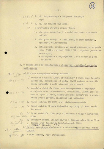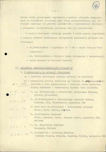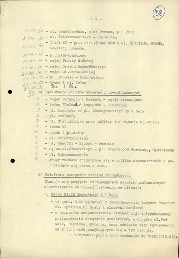 - Koncepcja działań porządkowych Milicji Obywatelskiej z dn. 4 XI 1982 r. w związku z przewidywanym zagrożeniem ładu i bezpieczeństwa publicznego w dn. 10 XI 1982 r. na terenie m. Wrocławia, IPN Wr 290/21, k. 45–52. (pdf, 852.69 KB)