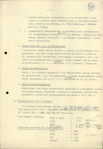 Plany działań KWMO we Wrocławiu w związku z przewidywanymi manifestacjami ulicznymi w listopadzie 1982 r., IPN Wr 290/21.